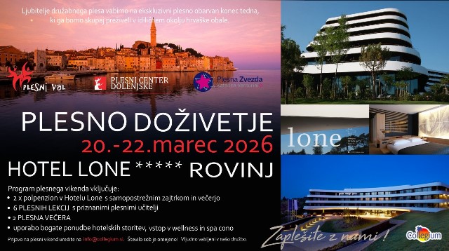 Plesno doživetje v Rovinju bo potekalo od 20. do 22. marca 2026 v Hotelu Lone.